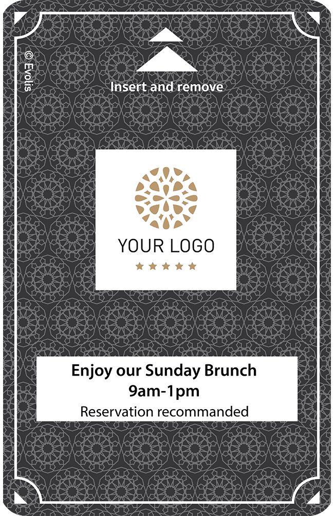 理想的材质支持 客房门禁钥匙是所有客人在入住期间唯一持有的卡片。它是突出您的优惠并提高其在客人中知名度的完美方式。
